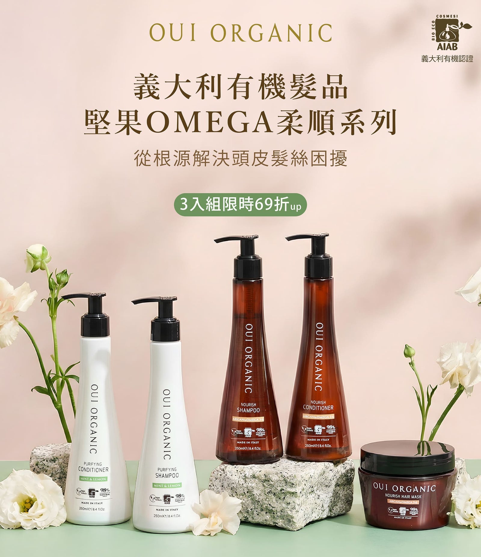 OUI ORGANIC 法國洗卸保養系列 / 植萃面膜系列-玫瑰5入盒裝、甜橙5入盒裝 / 山茶雪絨花保濕修護防曬乳 / 法國滋養護手霜 / 義大利有機髮品系列