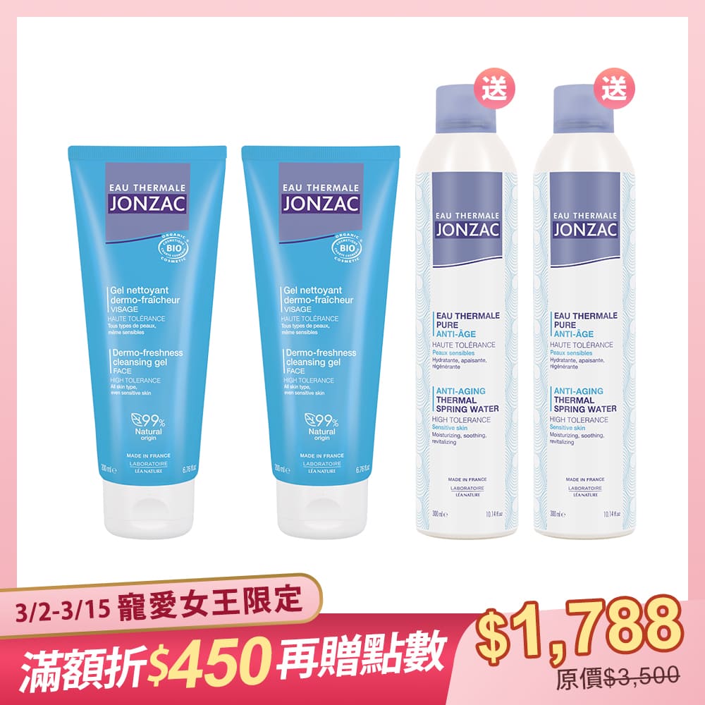 【寵愛女神限定組】買2送2|法國活泉潔顏保濕4件組 (活泉深層洗面膠200mLx2+舒活泉水噴霧300mLx2)