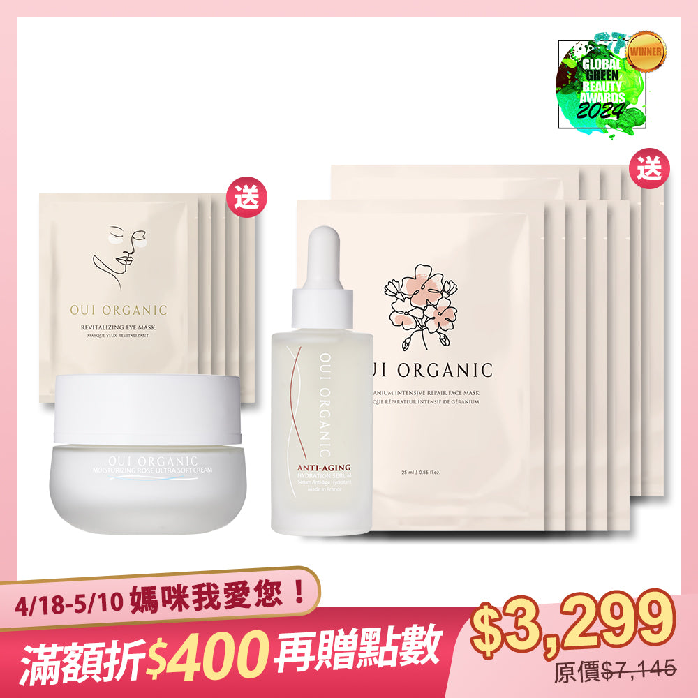 Oui Organic唯有機感恩媽咪限定組!滿額最高現折$400!鐵粉必囤明星品「玫瑰時光瓶」、「法國有機純露花水」、「世界金獎面膜」、+「義大利緊緻眼霜/有機髮品」等,敏感肌、熟齡肌、醫美術後及全膚質都愛用。雙11暖身限定優惠,錯過不再!