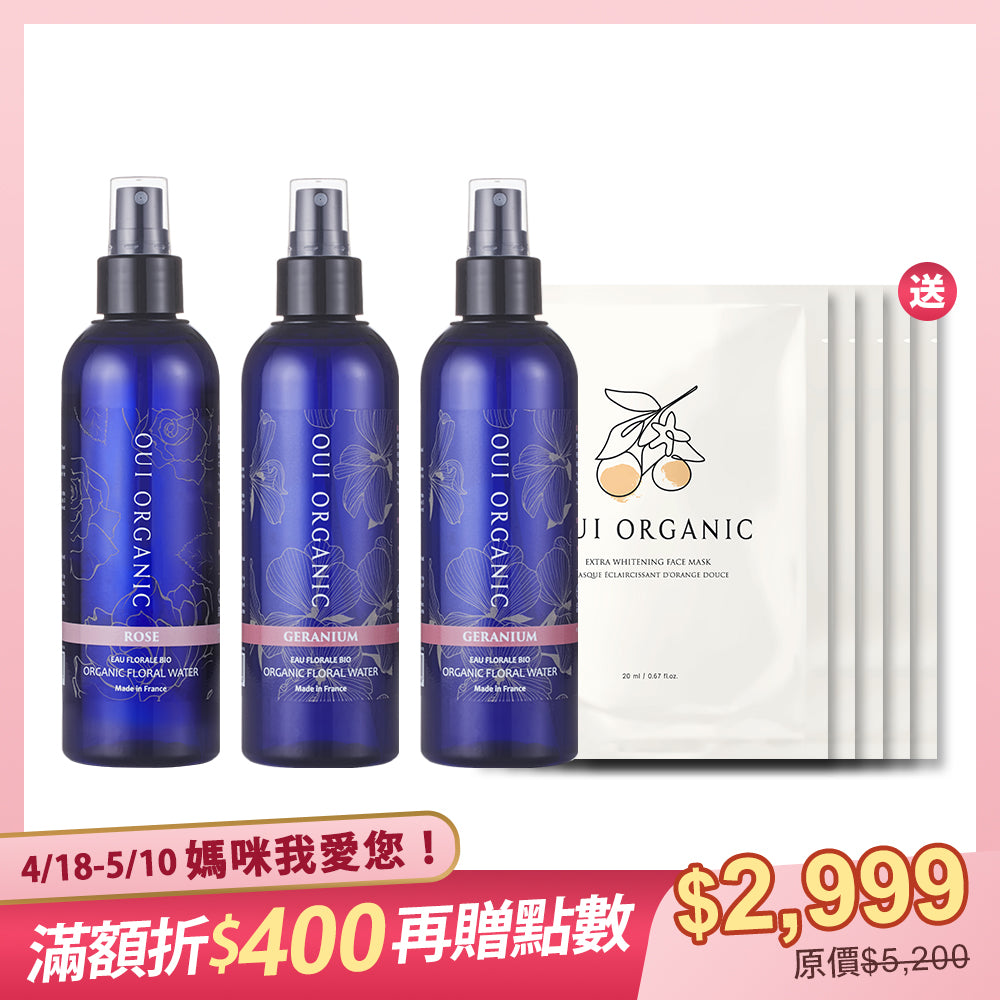 Oui Organic唯有機感恩媽咪限定組!滿額最高現折$400!鐵粉必囤明星品「玫瑰時光瓶」、「法國有機純露花水」...