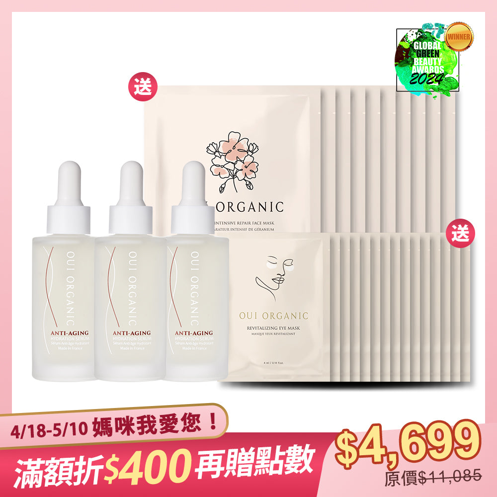 【感恩媽咪節】|榮獲世界最佳有機抗老精華液金獎|買3送25-法國玫瑰時光瓶3入組【贈天竺葵面膜x10+眼膜x15】