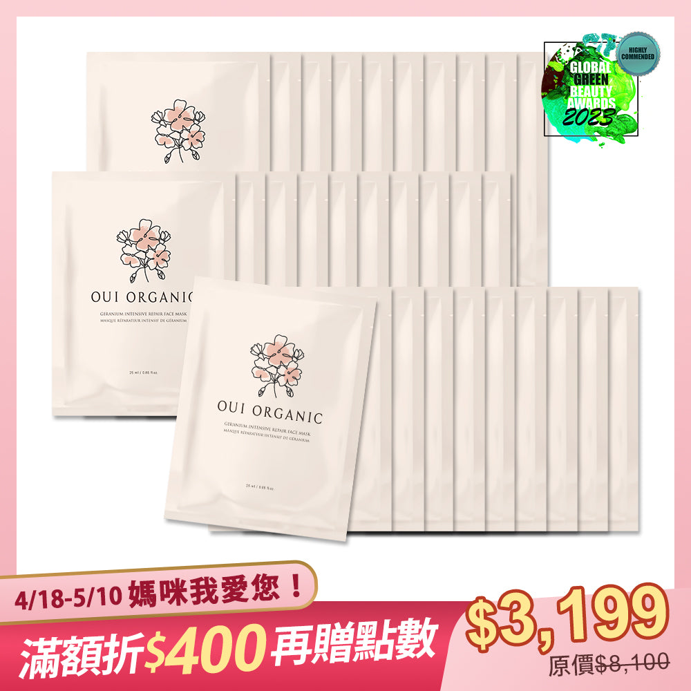 【感恩媽咪節】|榮獲環球最佳舒緩鎮定產品獎|天竺葵全效修護面膜30入組***