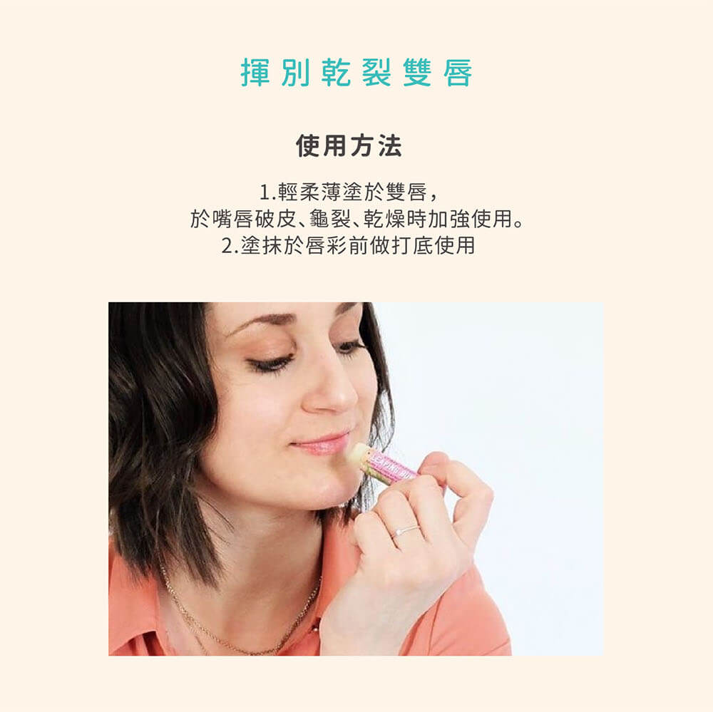 1.輕柔薄塗於雙唇,於嘴唇破皮、龜裂、乾燥時加強使用。