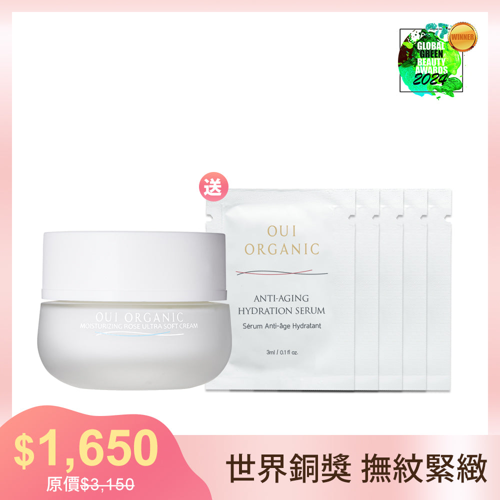 添加抗老專利配方;ALPAFLOR® BUDDLEJA AO瑞士醉魚草萃取專利成分、有機向日葵籽油、有機荷荷芭油及法國有機藥劑師玫瑰萃取,幫助肌膚撫平細紋、保濕修護。