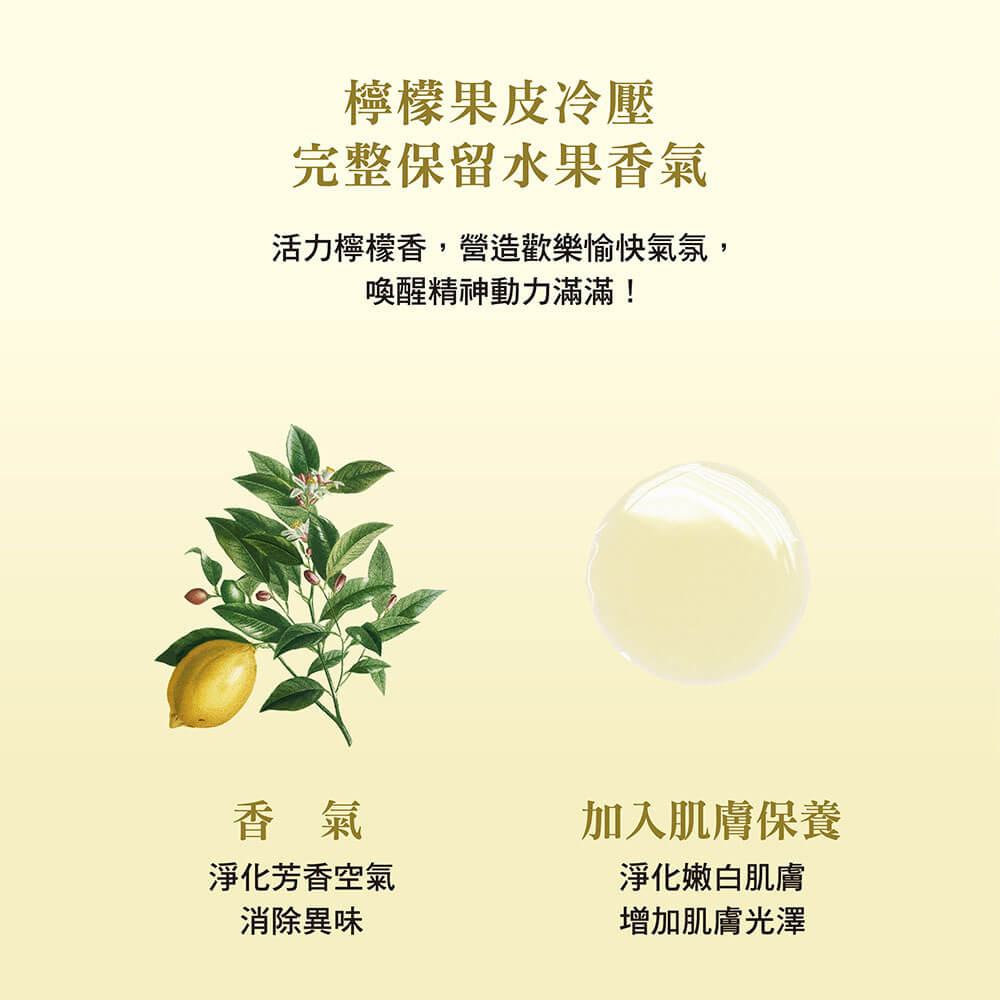 活力檸檬香,能淨化芳香空氣,消除異味;淨化緊緻毛孔,嫩白肌膚