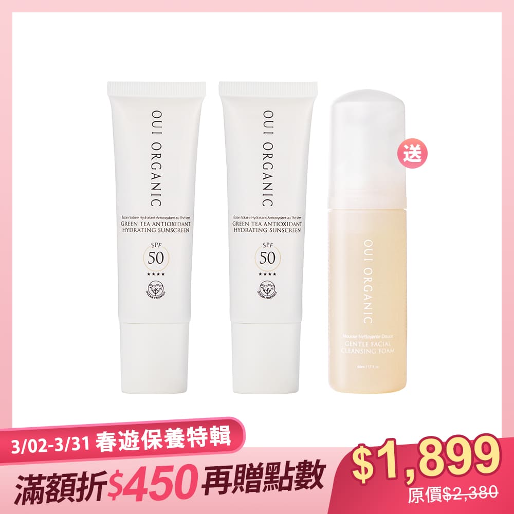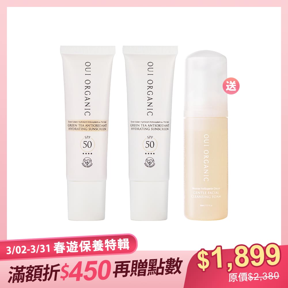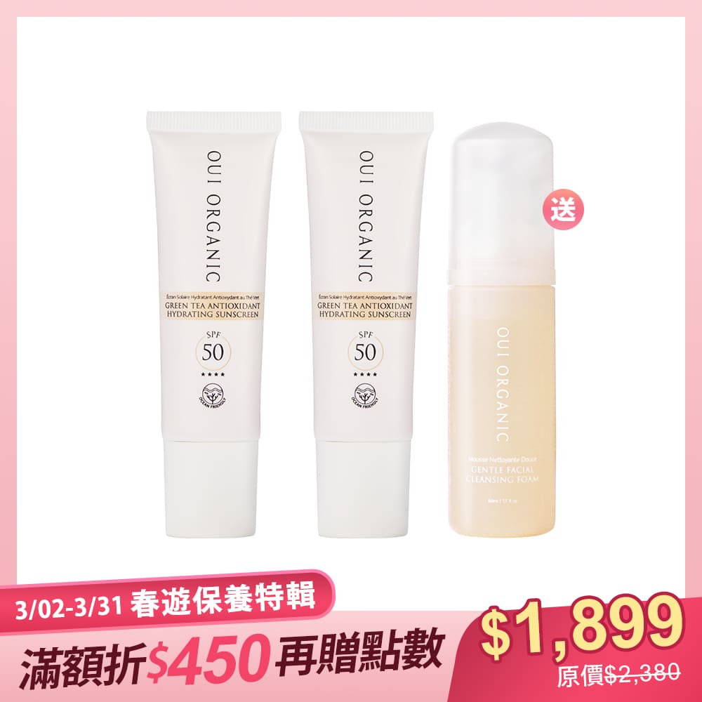 • 組合內容:山茶雪絨花保濕修護防曬乳x2+橙花保濕柔嫩潔顏慕斯50mL