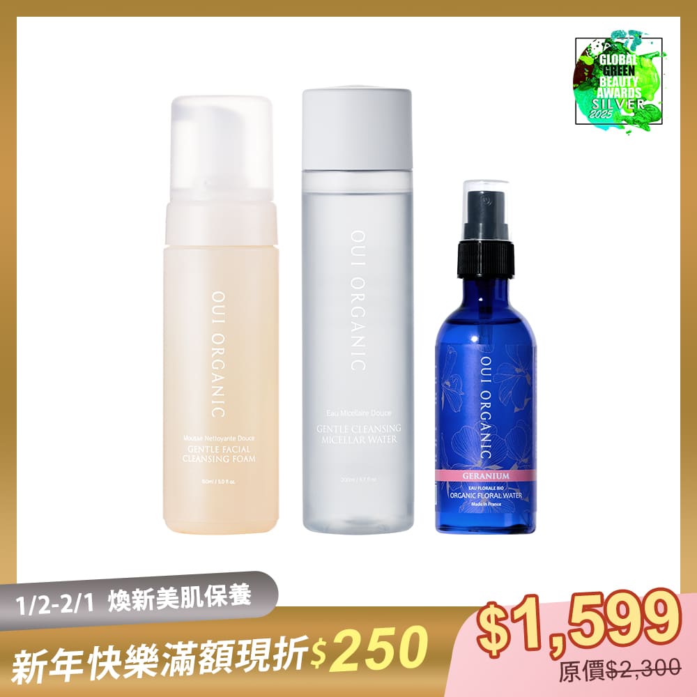 組合內容:橙花保濕柔嫩潔顏慕斯150mL+玫瑰保濕修護卸妝水200mL+純露花水100mL